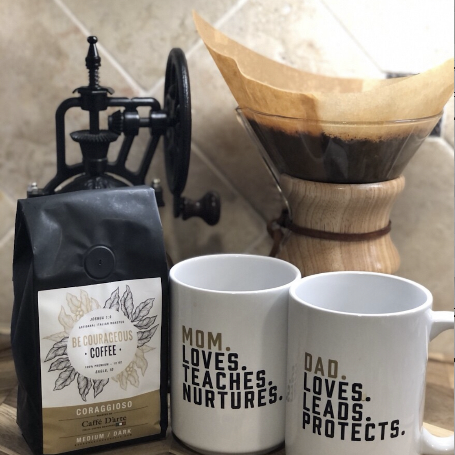 This comes with two 12 Oz. Bags of “Award Winning” Coraggioso thats supremely smooth for your drip and french press while also having two 12 Oz. Bags of Risoluto a smooth, bold, and well-balanced espresso. Both roasts are medium/dark.